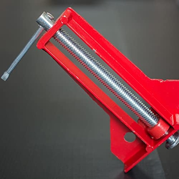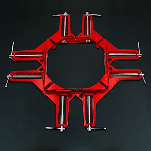 - §【Accuracy】: The accuracy of the corner clamps allows you to make and reinforce frames with precision featuring maximum clamping range of 3-inch. The swivel jaw can rotate the clamp to adjust work-pieces to different thickness. The reinforced connection and metal diagonal connection part of the angle clamps decrease the excessive pressure which can cause breaking.