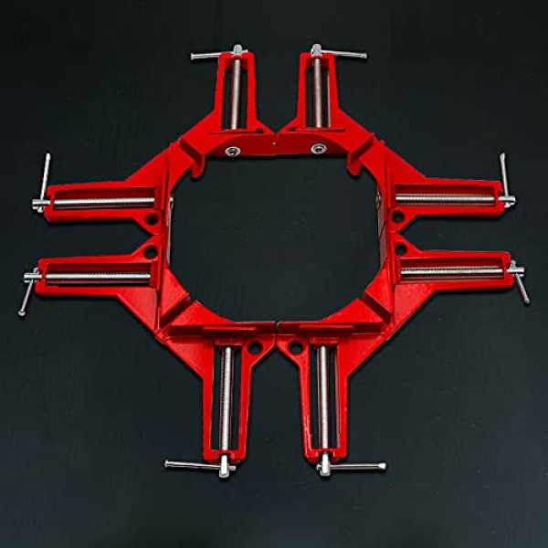 - §【Free Your Hand】: The problematic miter joint projects still annoy you? Innovative 90 degree corner clamps make setup more manageable with L-shaped jaw that can clamp different pieces simultaneously, saving your time and freeing your busy hands without requiring more aligning and turning.