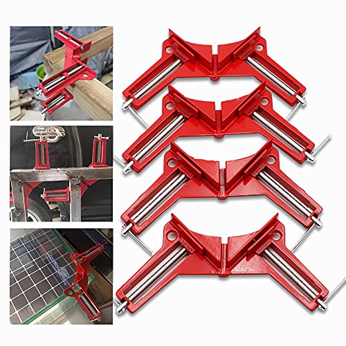 - §【Versatility】: The woodworking corner clamps align two pieces of wood, planks, metal, or glass into the clamp at a 90-degree angle. Moreover, the right angle clamps set is suitable for fixing fish-tanks, joining photo frames, installing furniture, welding, and molding, featuring holes in the base that allow them to be mounted to a workbench to add more stability for setup.