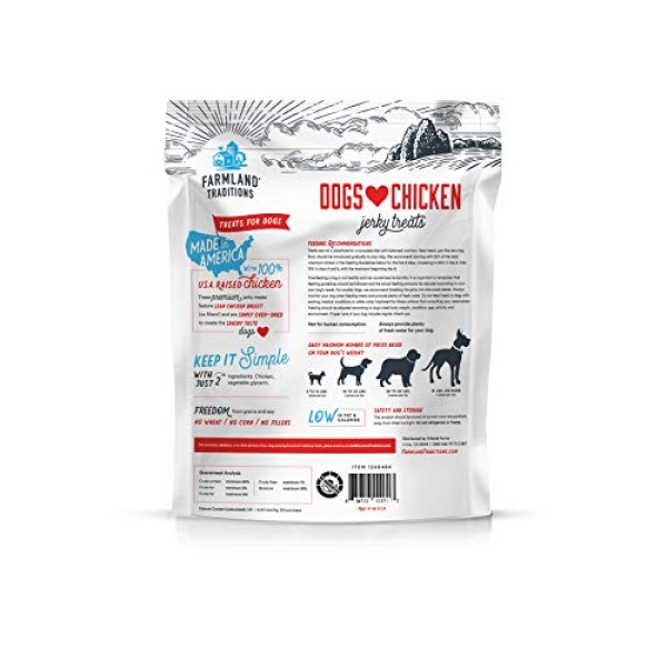 Details: We love dogs as much as you do, so we put that love into creating a safe and healthy treat you can feel good about giving to your four-legged friend. Farmland Traditions all-natural jerky is a great alternative to bones and rawhide; your dog gets the chewy texture they love without the heightened fear of choking. Free from artificial colors, flavorings, and fillers, our jerky dog treats will make a great addition to your dog’s balanced diet. Our technique of oven drying wholesome chicken breasts intensifies their naturally delicious flavor – so no worries about a bland treat here. Your pup will savor the flavor and beg for more.