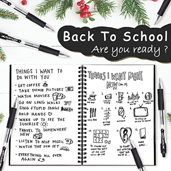 • 【Long Lasting】Large ink tube are filled with more ink for our gel pens, which makes our black pens long lasting. Quick drying makes you stay away from smearing, and left handed people can easily use it