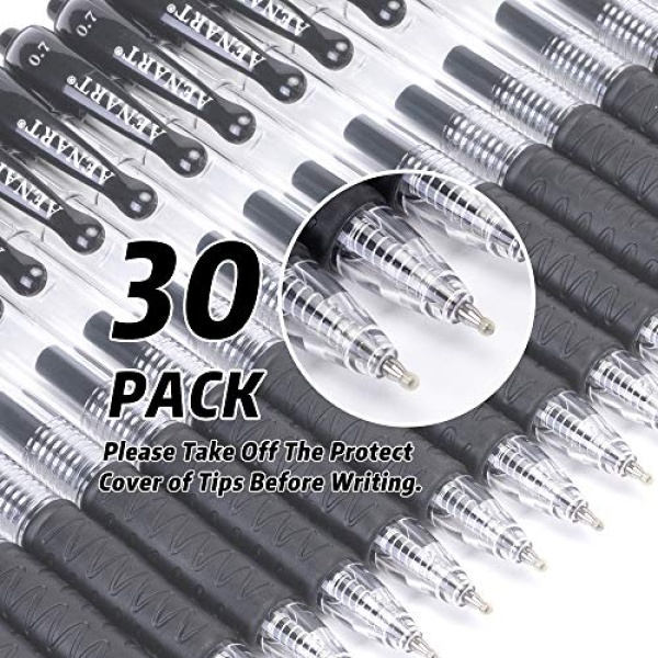 Gel Pens, 30 Pack Black Gel Pen Fine Point, Retractable Gel Ink Rollerball Pens for Smooth Writing (0.7mm)